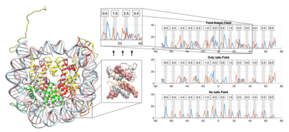 Chromatin is a complex of proteins and DNA found in the nuclei of eukaryotic cells. Its primary functions are to compact and structurally reinforce the DNA whilst keeping it accessible to DNA-binding proteins, such as transcription factors. The building blocks of chromatin are the nucleosomes, structures in which approximately 147 base pairs of DNA wrap around a histone protein octamer. Due to its molecular composition, its size, and its ability to influence gene expression and transcription through its dynamics, chromatin is an extremely complex system. Its intricate dynamics are tuned by both mechanical and electrostatic factors and by biomolecular interactions occurring in the cell nucleus [1].